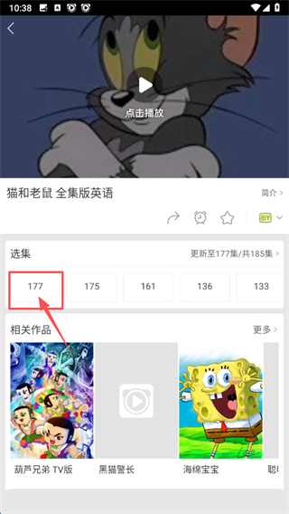4、在動漫詳情頁,點擊第177集選項,開始觀看該集內(nèi)容。