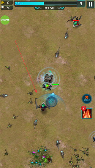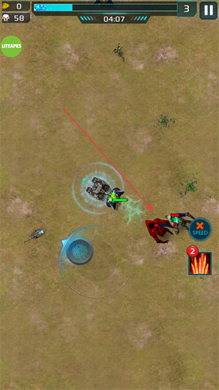 2、在戰(zhàn)場中移動,躲避敵方小怪,持續(xù)消滅敵人,擴大優(yōu)勢。