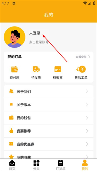 2、在個(gè)人中心頁面,點(diǎn)擊未登錄,進(jìn)入登錄頁面。