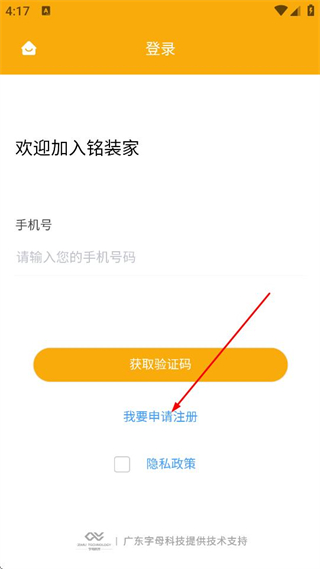3、在登錄頁面,點(diǎn)擊我要申請(qǐng)注冊(cè),進(jìn)入注冊(cè)界面。