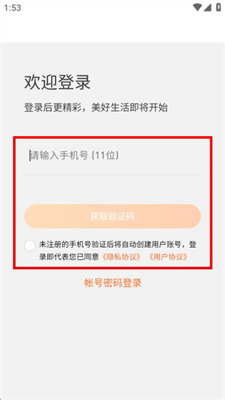 3、在登錄頁(yè)面,填寫(xiě)手機(jī)號(hào)后點(diǎn)擊獲取驗(yàn)證碼,進(jìn)入驗(yàn)證碼輸入頁(yè)面。