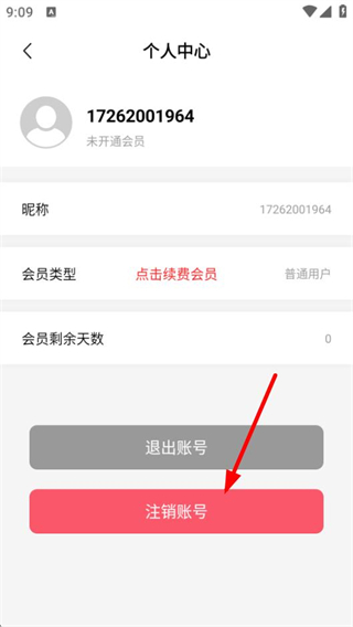 3、在個人中心頁面,點擊【注銷賬號,可完成賬號注銷操作。