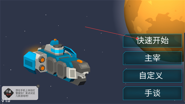 1、打開機械戰(zhàn)爭3游戲主頁面,點擊快速開始即可直接進入游戲世界。