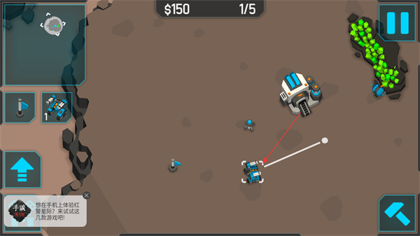 2、點擊選中機械戰(zhàn)車,拖動畫出線條控制戰(zhàn)車的移動或是點擊屏幕控制移動。
