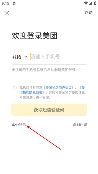 3、在登錄界面,點擊密碼登錄,切換到密碼登錄流程。