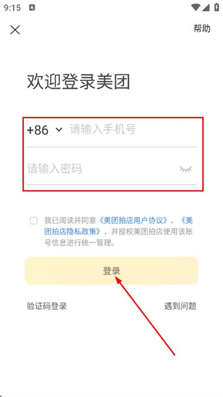 4、在密碼登錄界面,輸入手機號和密碼,點擊登錄,完成登錄操作。