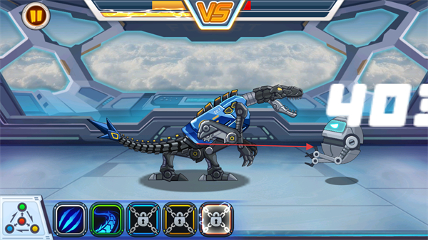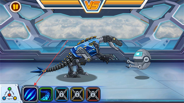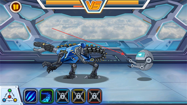 1、操控機械恐龍,點擊下方技能圖標釋放攻擊,與敵方機器人對戰(zhàn)。