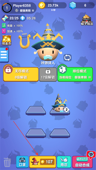 4、合成的過(guò)程中,板塊上可能會(huì)出現(xiàn)一些神秘膠囊,點(diǎn)擊開(kāi)啟可以獲得隨機(jī)級(jí)別的法師。