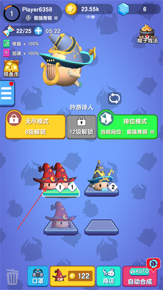 2、拖動(dòng)不同板塊上的相同等級(jí)的法師進(jìn)行合成,獲得更高等級(jí)的法師。