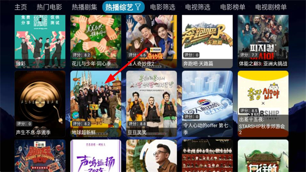 1、在大魚影倉首頁,點擊頂部導(dǎo)航欄的熱播綜藝選項,進入熱播綜藝頁面。