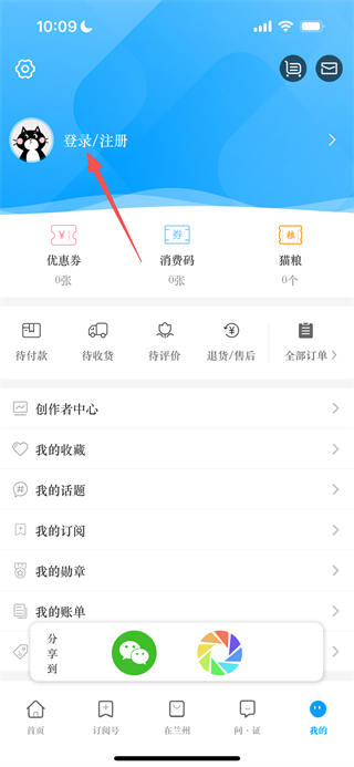 2、在個(gè)人中心頁(yè)面,點(diǎn)擊登錄注冊(cè)選項(xiàng),進(jìn)入登錄頁(yè)面。