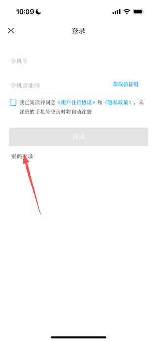 3、在登錄頁(yè)面,點(diǎn)擊密碼登錄選項(xiàng),切換至密碼登錄模式。