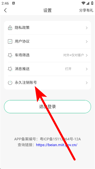 3、在設(shè)置頁面,點(diǎn)擊永久注銷賬號,進(jìn)入注銷頁面。