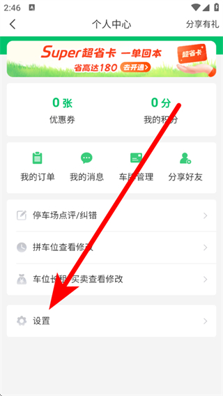 2、在個人中心頁面,點(diǎn)擊設(shè)置,進(jìn)入設(shè)置頁面。