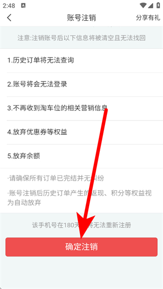 4、在注銷頁面,閱讀注意事項后,點(diǎn)擊確定注銷,完成注銷操作。