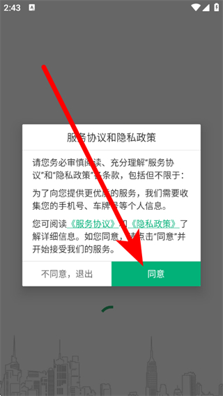 1、打開淘車位,在彈窗中,點(diǎn)擊同意,進(jìn)入主界面。