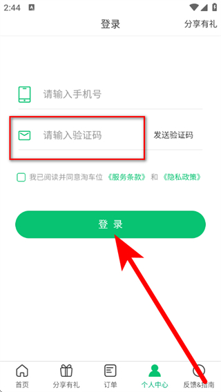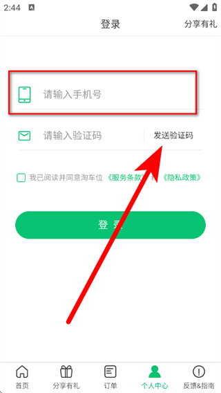 3、在登錄頁(yè)面,輸入手機(jī)號(hào),點(diǎn)擊發(fā)送驗(yàn)證碼。
