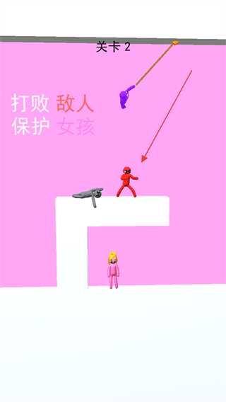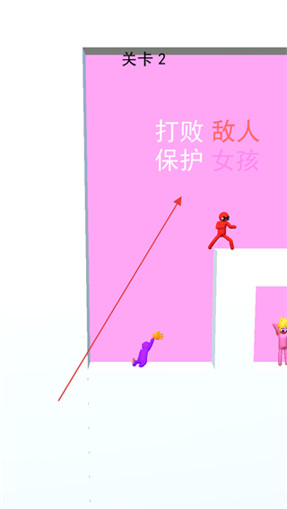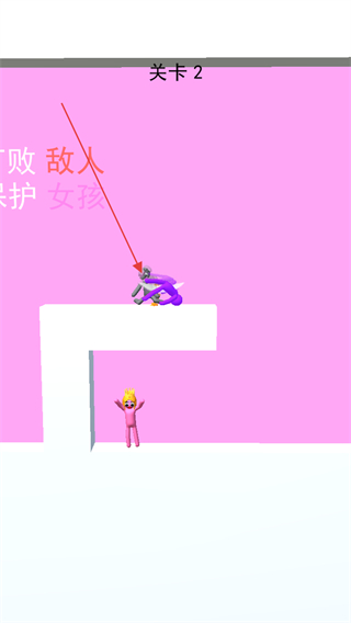 1、在關(guān)卡2中,操控紫色角色移動(dòng),目標(biāo)是擊敗敵人、保護(hù)女孩,向紅色敵人方向推進(jìn)。