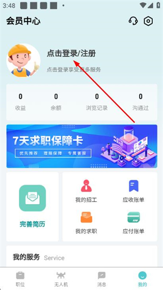 2、在個(gè)人中心頁(yè)面點(diǎn)擊登錄注冊(cè)區(qū)域,進(jìn)入天俠網(wǎng)的登錄頁(yè)面。