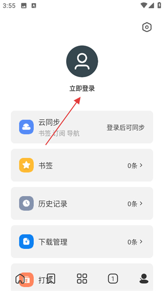 1、在Top瀏覽器的首頁,點擊底部的我的選項,進入個人中心頁面。