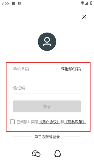 3、在登錄頁面,填寫信息,勾選協(xié)議后點擊登錄完成登錄。