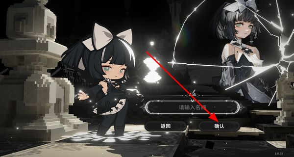 1、在輸入名稱的界面填寫角色名字,點擊確認按鈕完成角色創(chuàng)建,進入游戲場景開啟后續(xù)探索。