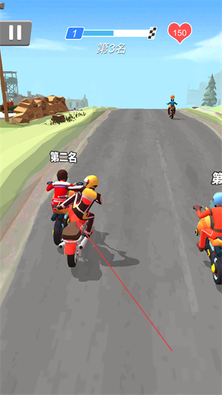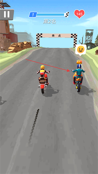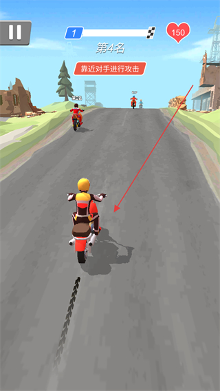 1、操控摩托靠近前方對(duì)手,按提示發(fā)起攻擊,提升排名從第4名向前進(jìn)階。