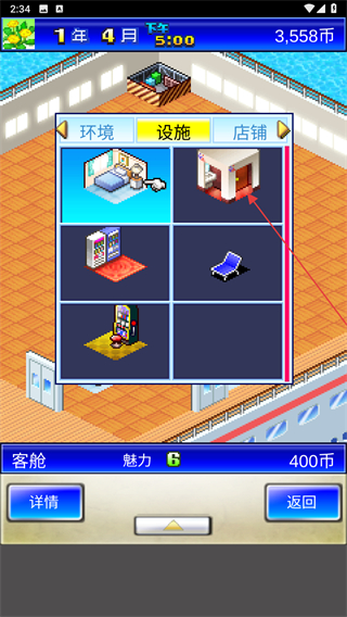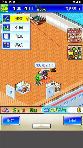 通過經(jīng)營積累的收益擴大游輪規(guī)模,增加艙室數(shù)量與設(shè)施種類,解鎖更高級的經(jīng)營功能,逐步提升游輪的豪華程度。