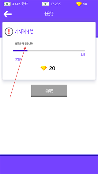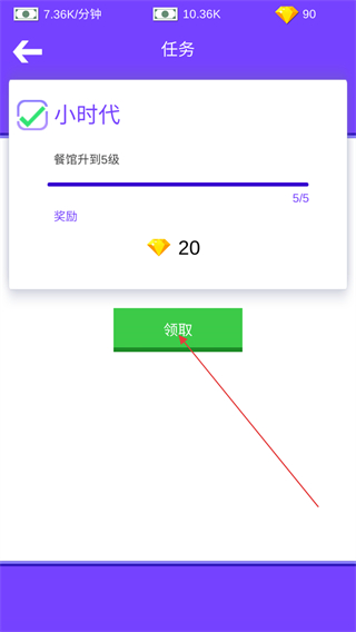 3、完成任務(wù)要求后,點(diǎn)擊回到任務(wù)菜單界面點(diǎn)擊領(lǐng)取按鈕獲得任務(wù)獎(jiǎng)勵(lì)鉆石。