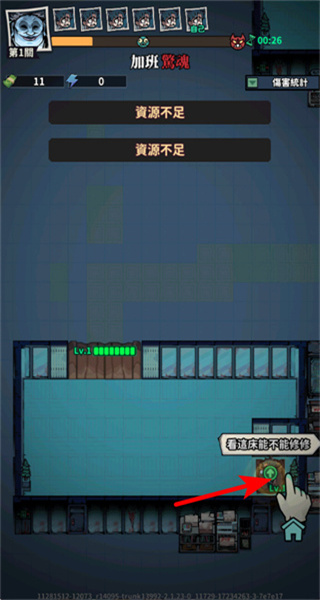 4、在場景中點(diǎn)擊可交互的設(shè)施如床,嘗試修復(fù)該設(shè)施以獲取增益效果,輔助后續(xù)的關(guān)卡挑戰(zhàn)。
