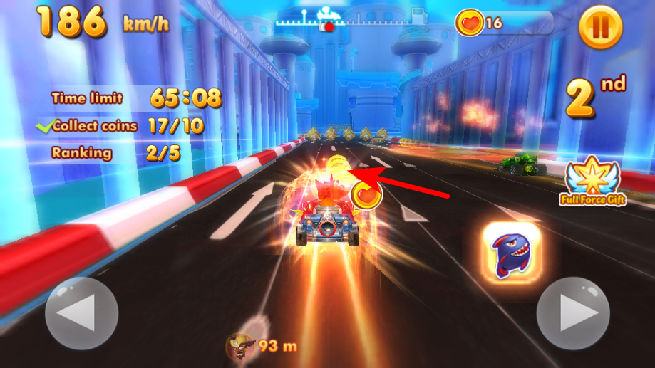 1、點擊賽道中的加速特效區(qū)域,可觸發(fā)賽車的加速狀態(tài),提升行駛速度以搶占賽道排名優(yōu)勢。