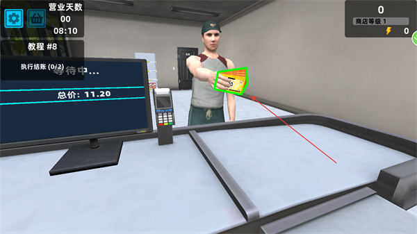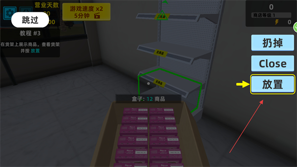 1、按指引找到地面的盒子,完成拿起盒子、讀取盒子信息的操作,按提示點擊盒子,完成基礎(chǔ)的商品前期處理準(zhǔn)備。