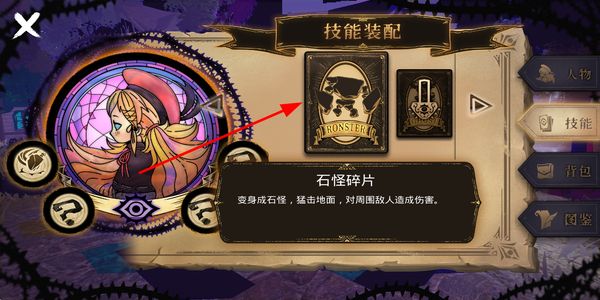 4、進(jìn)入技能裝配界面,選擇技能卡片進(jìn)行裝配,獲得對(duì)應(yīng)技能效果,強(qiáng)化角色的戰(zhàn)斗能力。