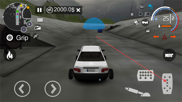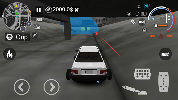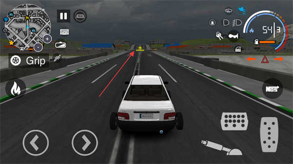 2、點擊右側(cè)油門鍵加速,追趕前方藍色車輛。
