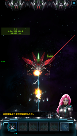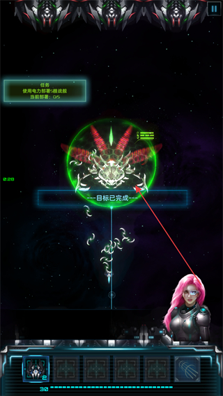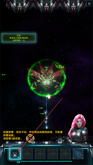 1、查看任務(wù)提示,需移動戰(zhàn)艦到軌道內(nèi)位置,在非軌道位置釋放技能擊敗病毒。