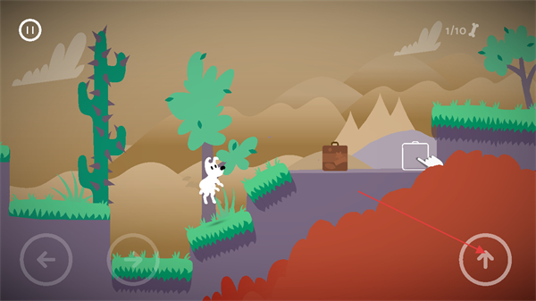3、點(diǎn)擊右下角的按鈕操控米皮進(jìn)行跳躍,跳上臺(tái)階以及躲避障礙等。