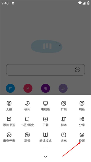 2、在功能操作菜單中,點(diǎn)擊設(shè)置選項(xiàng),進(jìn)入設(shè)置頁面。