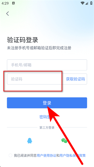 4、在輸入框中,輸入驗(yàn)證碼,勾選協(xié)議后,點(diǎn)擊登錄,完成賬號(hào)登錄。