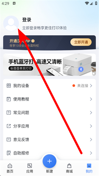 1、打開漢碼標(biāo)簽打印機(jī),在我的頁面,點(diǎn)擊登錄,進(jìn)入登錄界面。