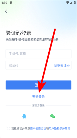 2、在登錄頁面,點(diǎn)擊密碼登錄,切換到密碼登錄界面。
