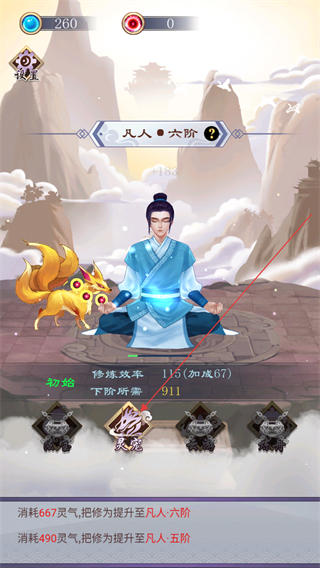 1、當(dāng)前伴隨靈寵九尾靈狐輔助修煉,靈寵會增益修煉效率,可通過消耗對應(yīng)靈氣提升境界,靈寵是輔助修煉、加快進(jìn)度的核心元素之一。