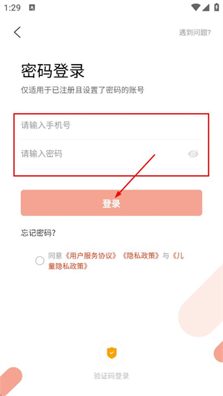 4、在密碼登錄頁面,填寫手機號與密碼,點擊登錄,完成賬號登錄。
