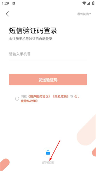 3、在驗證碼登錄頁面,點擊底部的密碼登錄,切換至密碼登錄頁面。