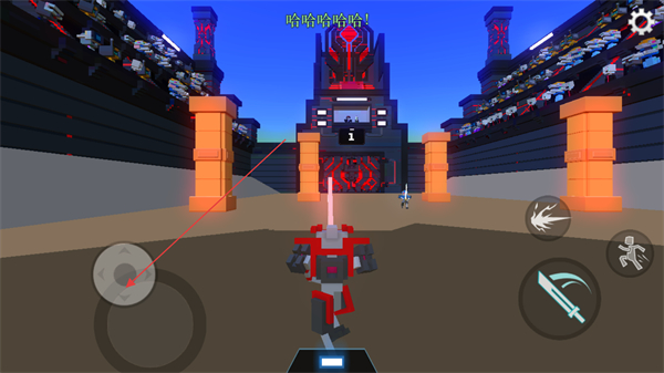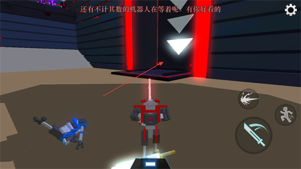 1、操控紅灰機(jī)器人進(jìn)入格斗場地,準(zhǔn)備迎戰(zhàn)敵方機(jī)器人。