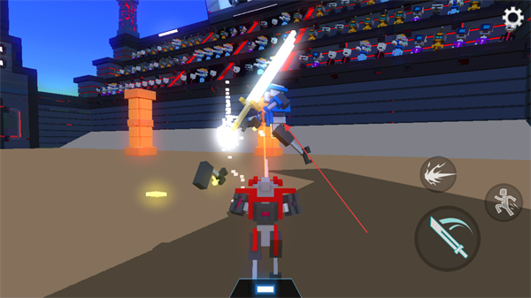 3、點(diǎn)擊光劍技能,與敵方機(jī)器人展開格斗,削減其血量。
