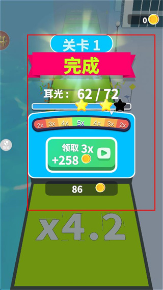 4、完成關卡進程后,查看結算界面的成果,點擊對應區(qū)域領取獲得的金幣獎勵。