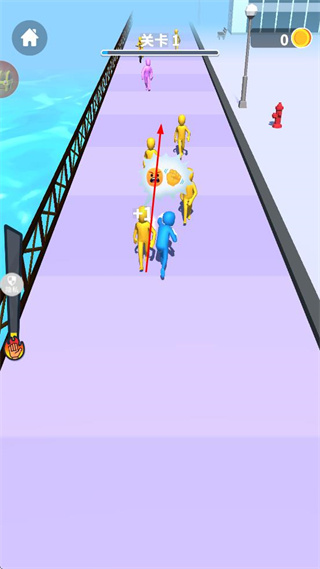 2、移動過程中接觸黃色角色,觸發(fā)互動效果,持續(xù)推進角色在賽道上的行進進度。