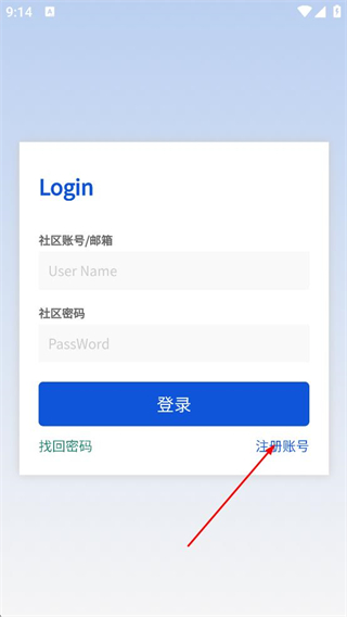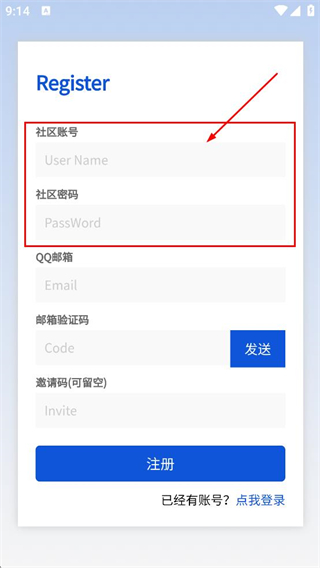 4、在注冊頁面,依次填寫社區(qū)賬號與社區(qū)密碼這兩項信息。