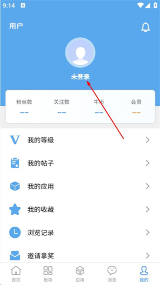2、在個人頁面,點擊未登錄區(qū)域,進入登錄頁面。