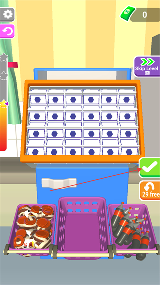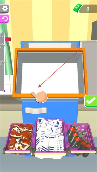4、將不同類型的物品分類放入冰箱,填滿所有空位完成關(guān)卡。